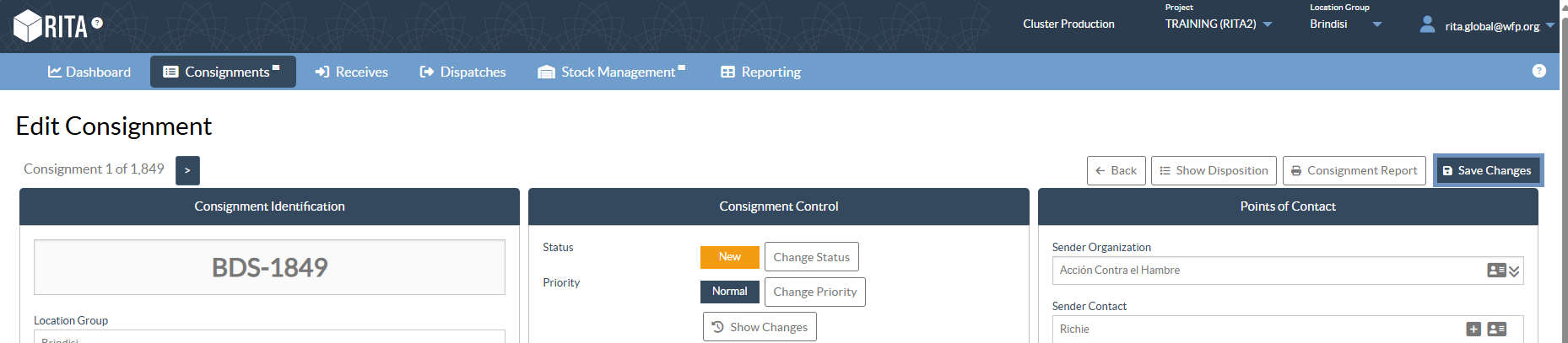 Save Changes: Click the "Save Changes" button at the top right of the page to save the consignment.